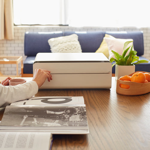 カラーは、ホワイトとカームグレーの2色展開。マットなスチール製ながらも、角のない柔らかな印象のケースは、どんなインテリアにもマッチします。北欧風でもモダンスタイルでも、しっくり馴染んでくれますよ。