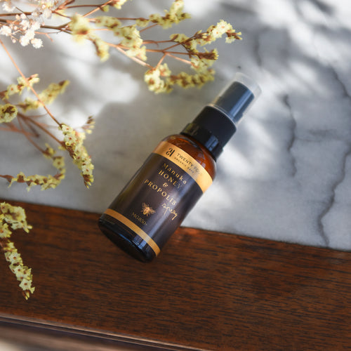 シックなボトルがセンスの良さを感じさせる「マヌカハニーの喉スプレー」です。高品質な純正マヌカハニーをたっぷり配合し、高い抗菌力を誇ります。乾燥や季節の変わり目で喉の調子が気になるときも、シュッとひと吹きするだけでケアが可能。喉をうるおしながら守ってくれる、心強いアイテムです。