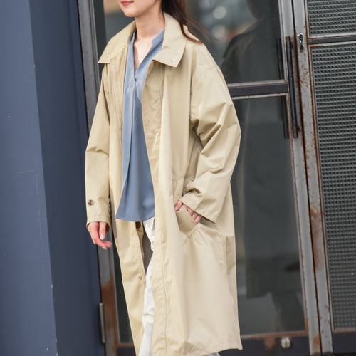 ピッと立ったデザインのスタンドカラーがスタイリッシュで、なおかつ雨風の侵入もシャットアウト。もちろん、折り返しても可愛いんです。