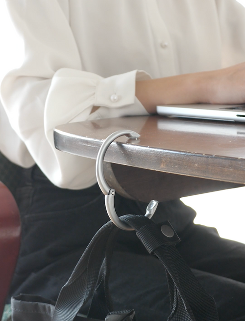 雨で濡れた場所に、大切なバッグは置きたくないですよね。場所を選ばず掛けられる「バッグハンガー」があれば、ちょっとした隙間がいつでもどこでもバッグ置き場に早変わり。傘を引っ掛ければ簡易的な傘立てとしても使えるので、傘の置き場所にも困りません。カフェなどでもイスの背もたれに荷物を置かなくていいので、ゆったり腰掛けることができますよ。