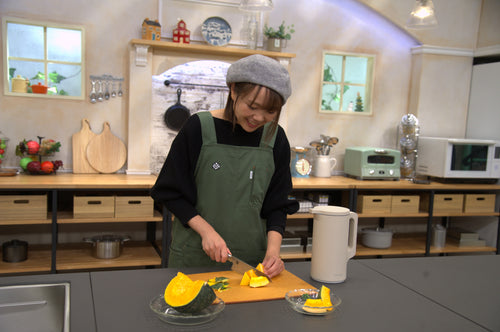 今回、ゆりさんには実際に「温かいスープが作れるミキサー」を使ってかぼちゃのポタージュを作っていただきました。手際よくかぼちゃを切って、ミキサーに入れるゆりさん。果たしてその使い心地は…?