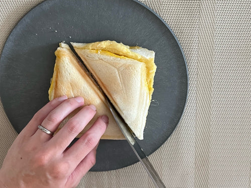 山本ゆりさん正直レビュー:第4回 ハッシュド餅ベーコンチーズ×まな板になるお皿&サヤ付きミニナイフ